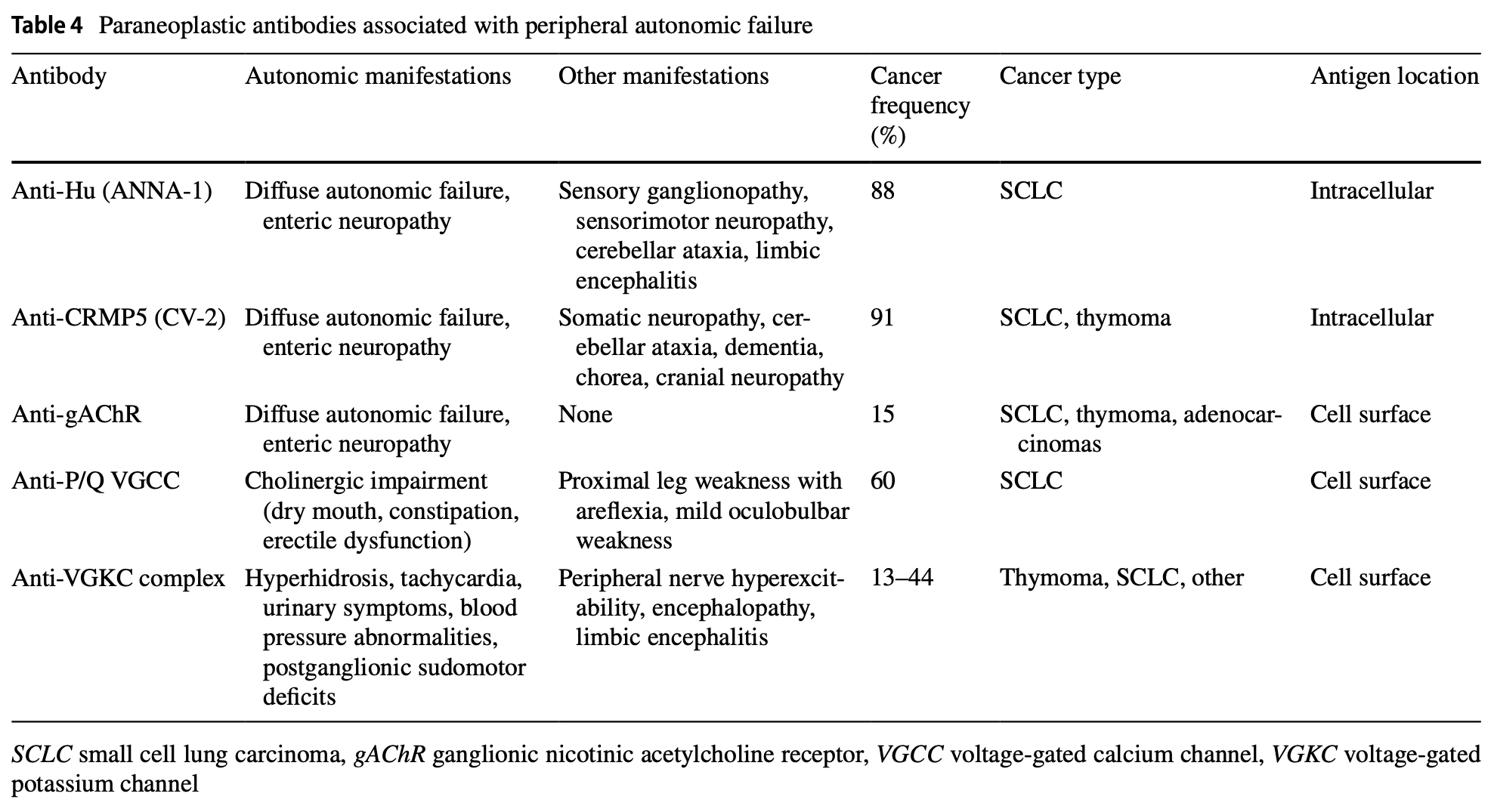 自律神経障害+自己免疫疾患や腫瘍などで疑う病態.